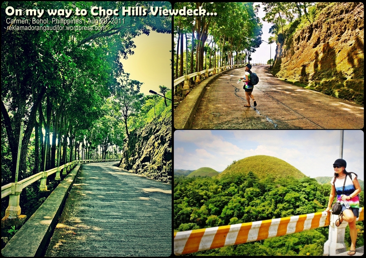 While we were walking our way to the viewdeck, we could already see some of the Choco Hills alongside the road. During that time, the hills were colored green because it was not dry season. Hiking with the backpack kinda hurt! ehehe! But we had to bear with it since we didn’t want a ride! haha! reklamadora! :D And we had to be extra careful ’cause there are blind curves; might be accidentally get hit by a vehicle! hehe!